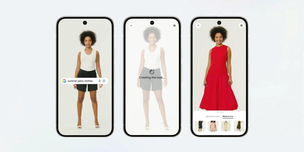 Mit der virtuellen Anprobe geht Google einen weiteren Schritt in Richtung personalisierter Einkaufserlebnisse. Statt Kleidung nur an Models zu zeigen, wird nun das individuelle Nutzerfoto zur Grundlage; was gerade beim Online-Kauf von Kleidung ein besseres Gefühl für Stil und Passform ermöglichen soll.