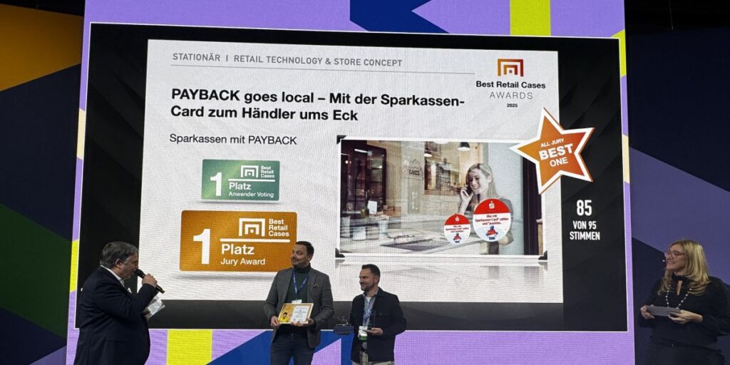 Zu den auffälligsten Gewinnern zählt „PAYBACK goes local“, das in der Kategorie Stationär | Retail Technology & Store Concept sowohl Jury- als auch Anwenderplatz eins erreichte. Die Lösung verlängert das PAYBACK-System gemeinsam mit den Sparkassen bis in den lokalen Handel hinein und erwies sich in beiden Bewertungsgruppen als besonders praxistauglich. In der Kategorie Stationär | Retail Media, Marketing & Service gelang L. Stroetmann (EDEKA) mit der datengestützten In-Store-Retail-Media-Lösung von Cyreen ein ebenso klarer Doppelerfolg.