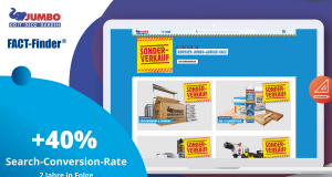 Die Schweizer Baumarktkette Jumbo kämpfte mit einer großen Herausforderung: Die angezeigten Ergebnisse im firmeneigenen Onlineshop passten oft nicht zum jeweiligen Anliegen. Jumbo setzt deshalb seit mehr als zwei Jahren auf die Suchlösung von FACT-Finder. Mit ihren überzeugenden Conversion-Raten konnte sie auch die Anwender beim Best Retail Cases Award begeistern.